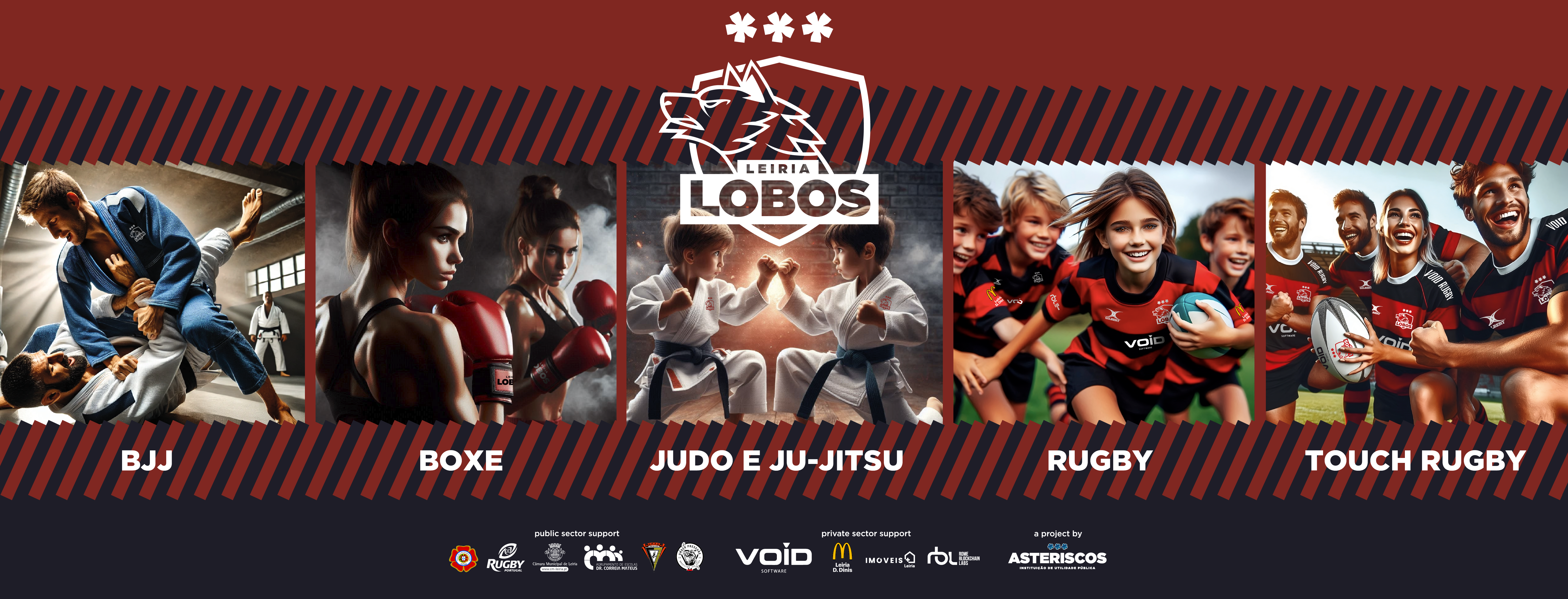 Os Lobos de Leiria são um clube desportivo da Asteriscos. Têm uma Escola de Artes Marciais (Judo, Ju-Jitsu, Jiu-Jitsu Brasileiro, Defesa Pessoal e Boxe) e uma Rugby Football School. Os Lobos são um clube de formação de crianças e jovens em que o foco é primeiro brincar, depois jogar e só depois praticar desporto.